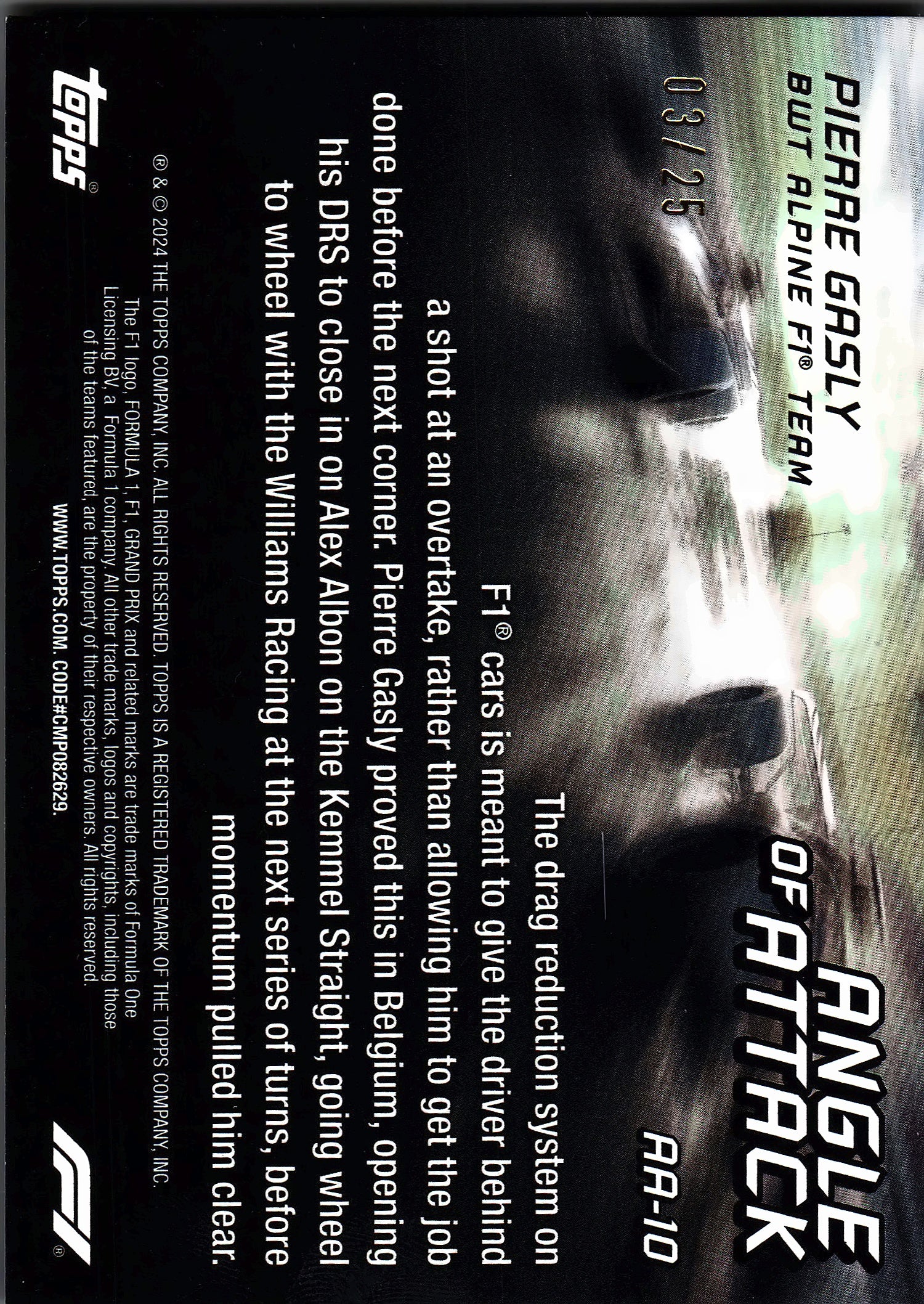 2024 Topps Paddock Pass Formula 1 Angle Of Attack Black Pierre Gasly /25 #AA-10 Alpine
