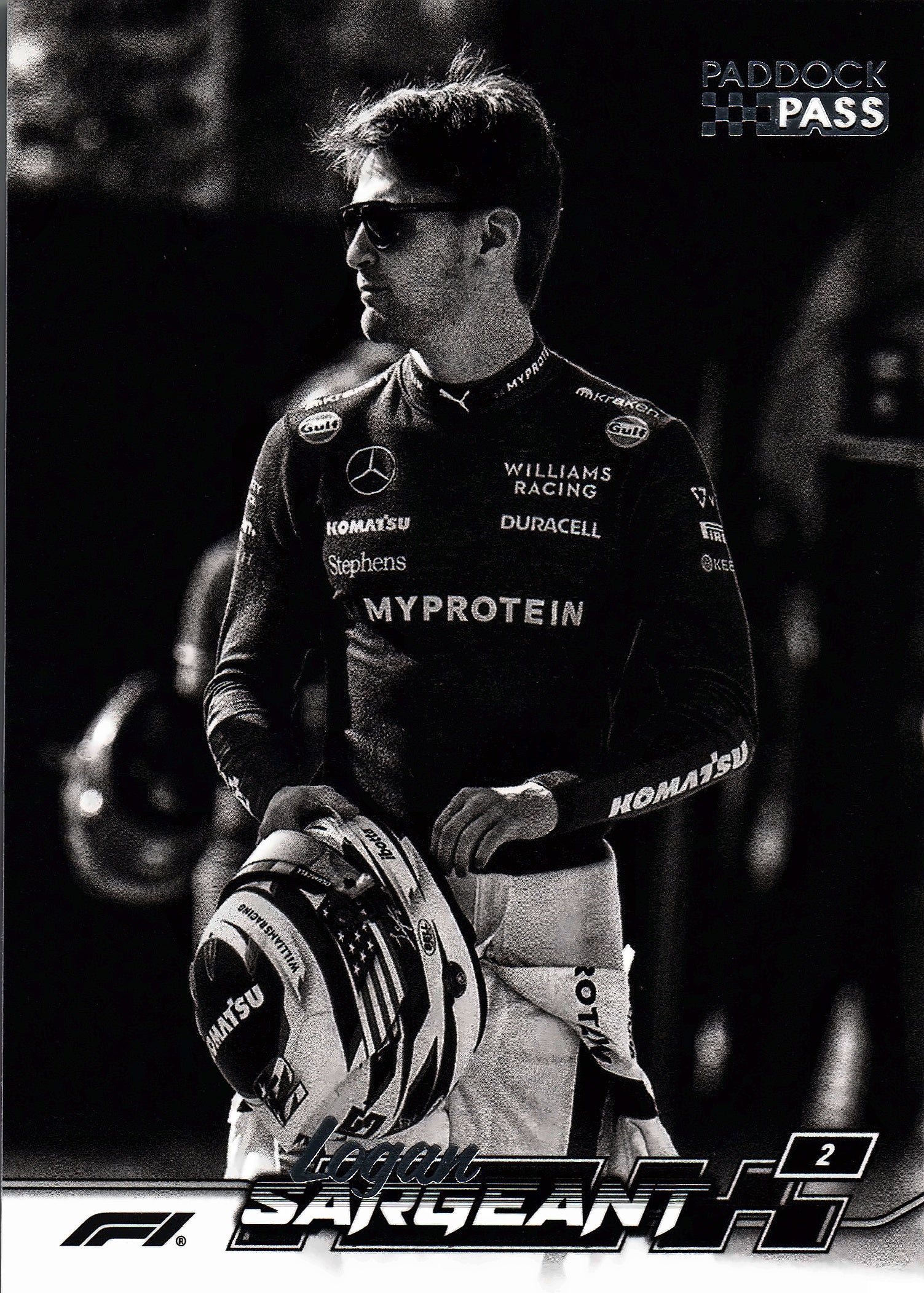 2024 Topps Paddock Pass Formula 1 Black and White Foil Logan Sargeant VAR #20A Williams