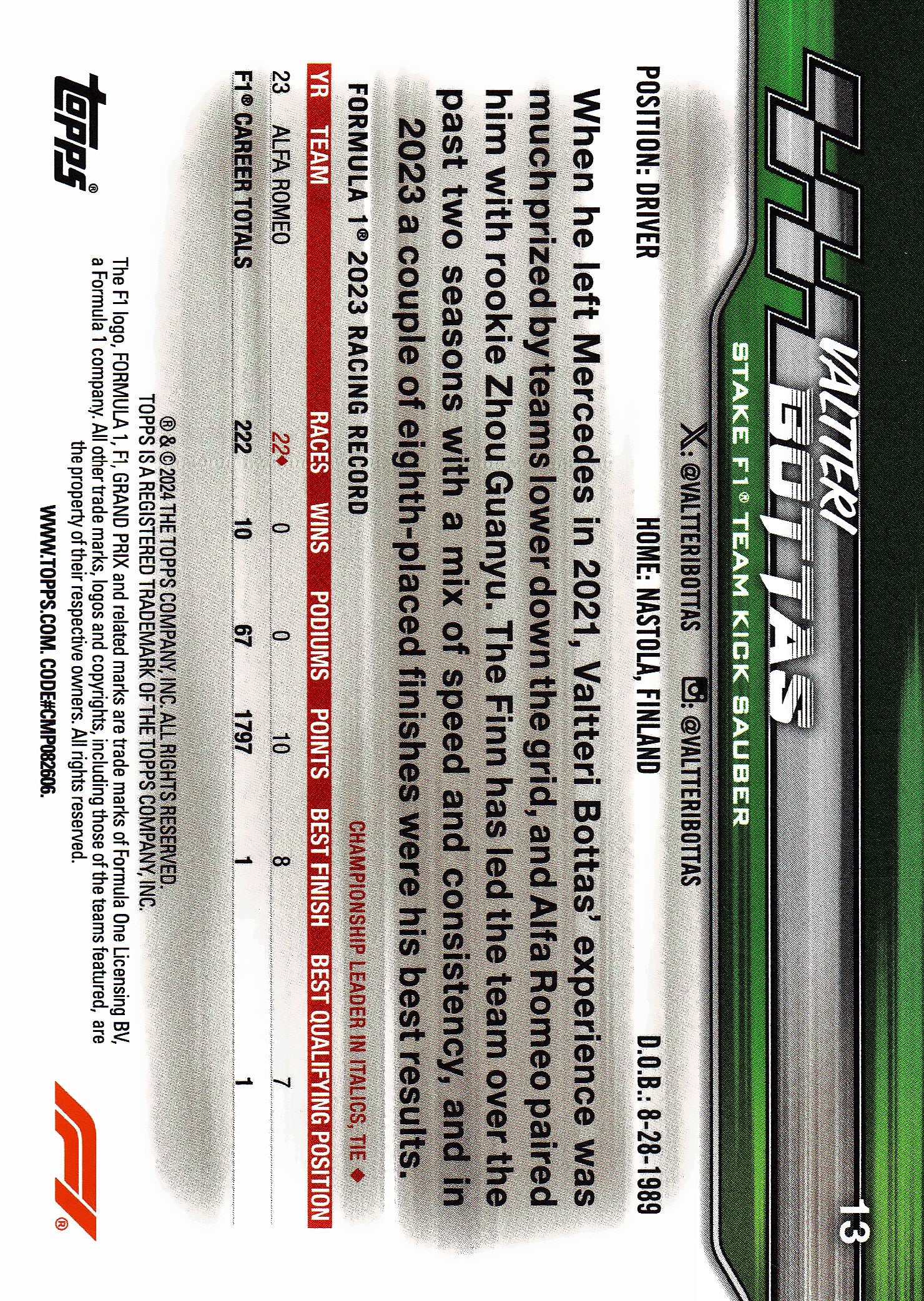 2024 Topps Paddock Pass Formula 1 Black Foil Valtteri Bottas VAR #13A KICK Sauber