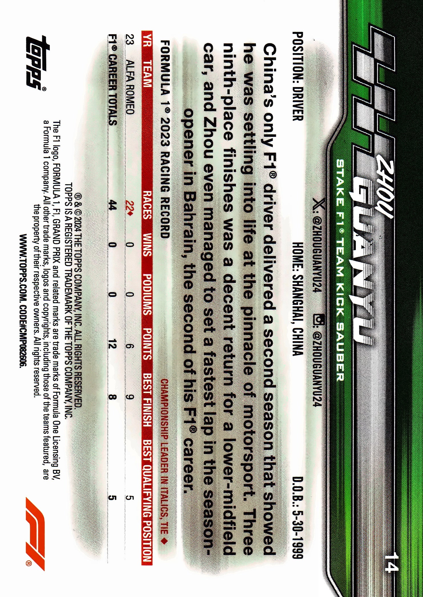 2024 Topps Paddock Pass Formula 1 Black Foil Zhou Guanyu VAR #14A KICK Sauber