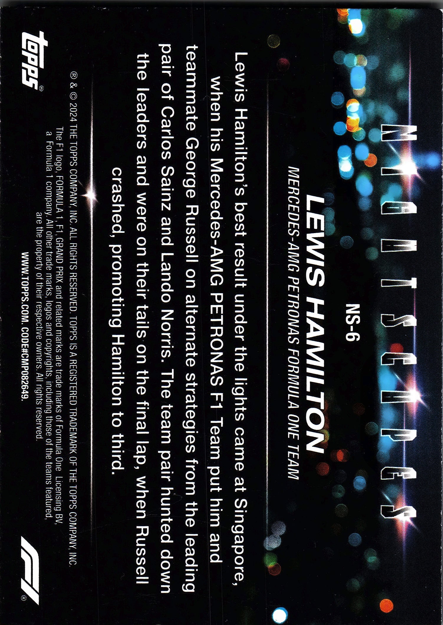 2024 Topps Paddock Pass Formula 1 Nightscapes Lewis Hamilton #NS-6 Mercedes-AMG