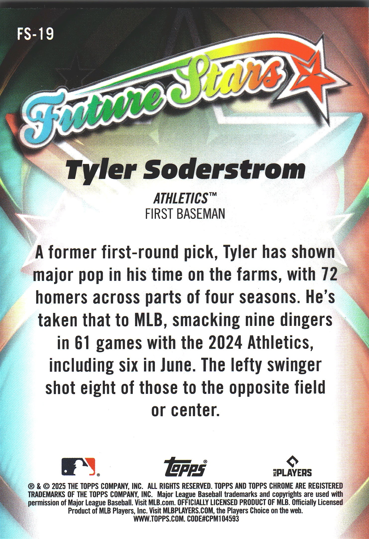 2025 Topps Chrome Future Stars Tyler Soderstrom #FS-19 Athletics