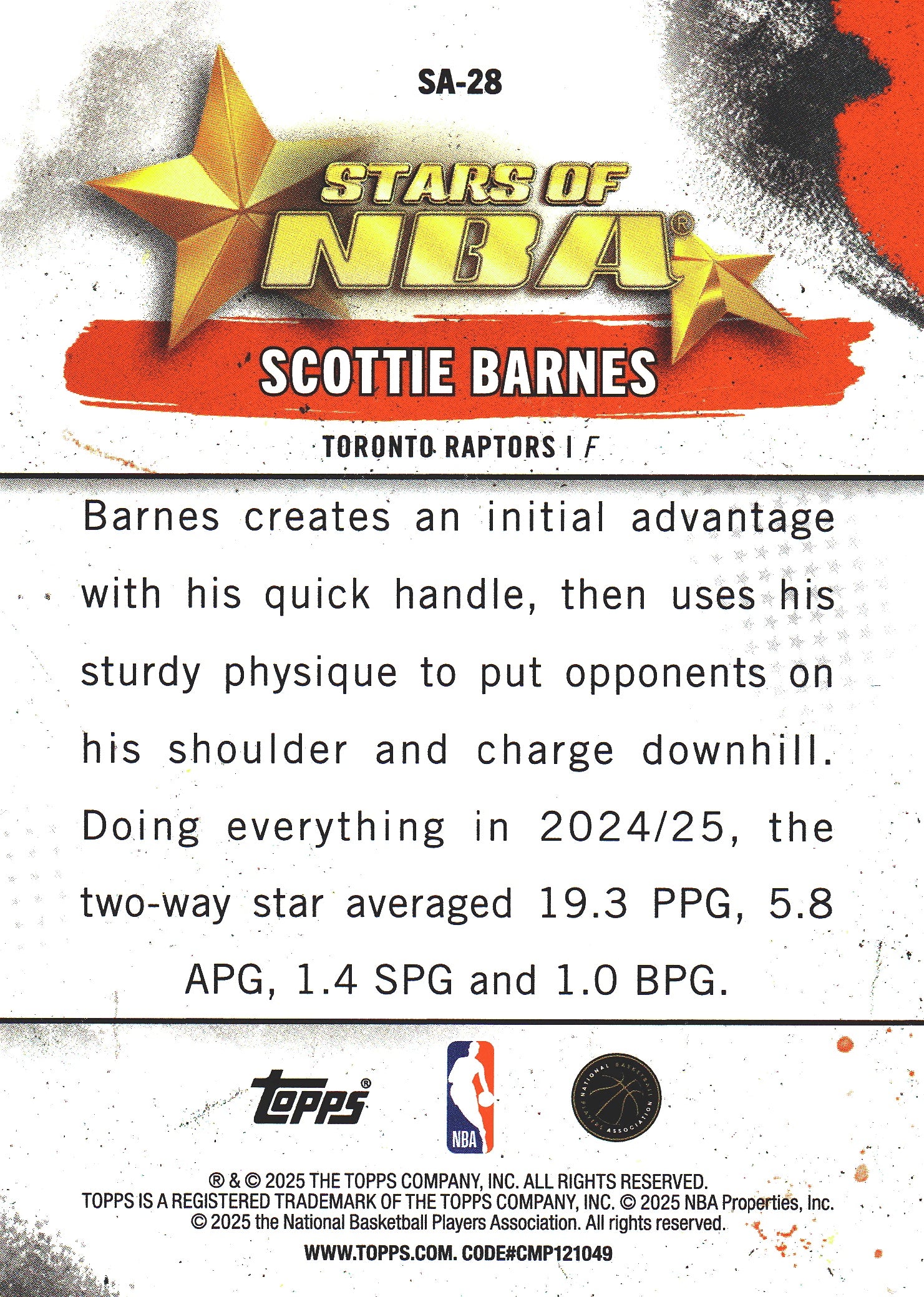 2025 Topps NBA Stars of NBA Scottie Barnes #SA-28 Toronto Raptors