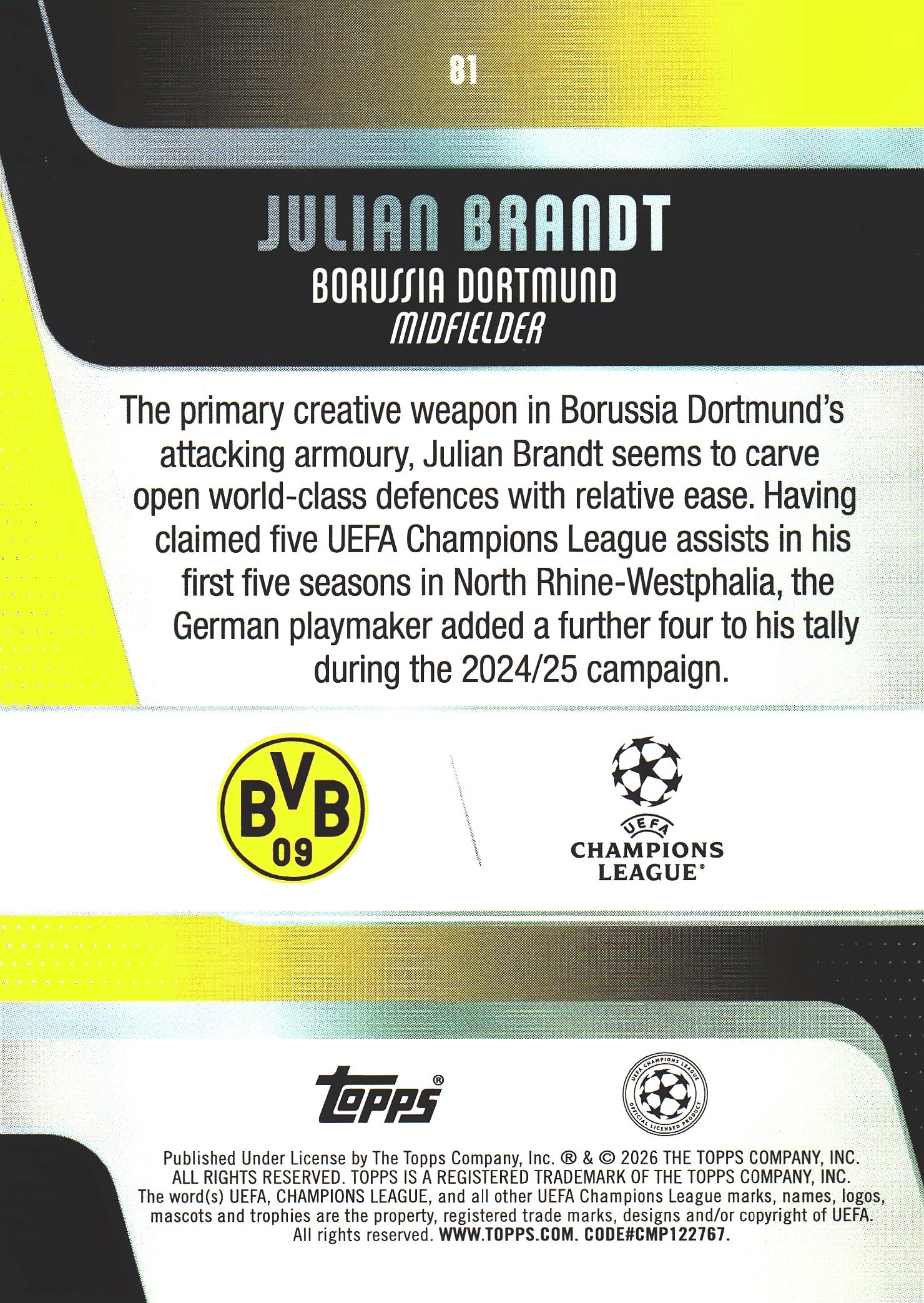 2025 Topps UCC Julian Brandt #81 Borussia Dortmund
