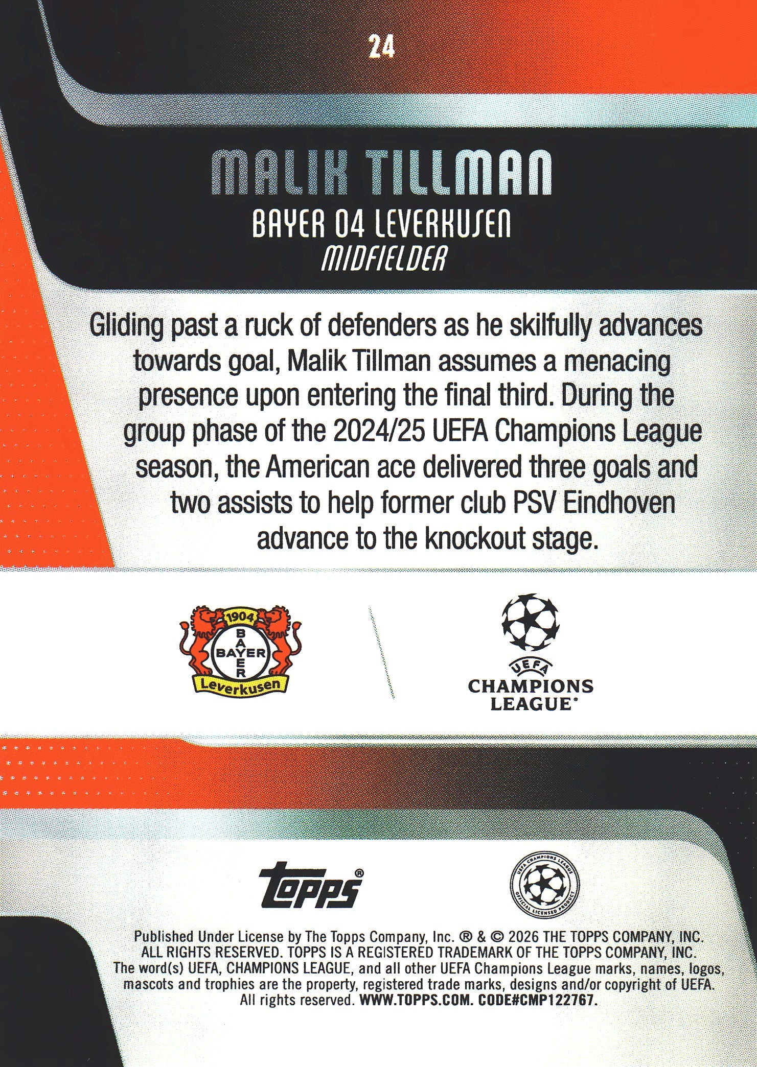 2025 Topps UCC Malik Tillman #24 Bayer Leverkusen
